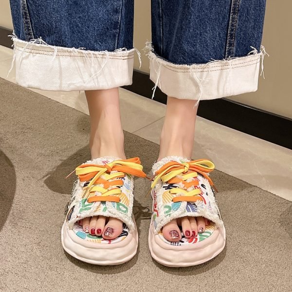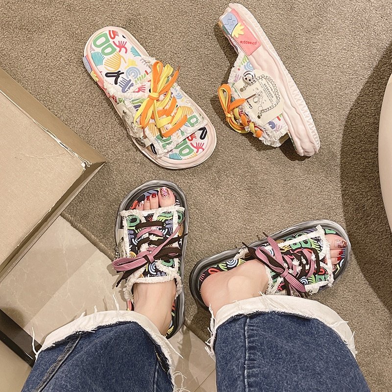 Fashion Design Summer Women Graffiti Slippers Platform Shoes Mules Flip Flops Street Sandals Clogs Flat Casual Shoes For Female